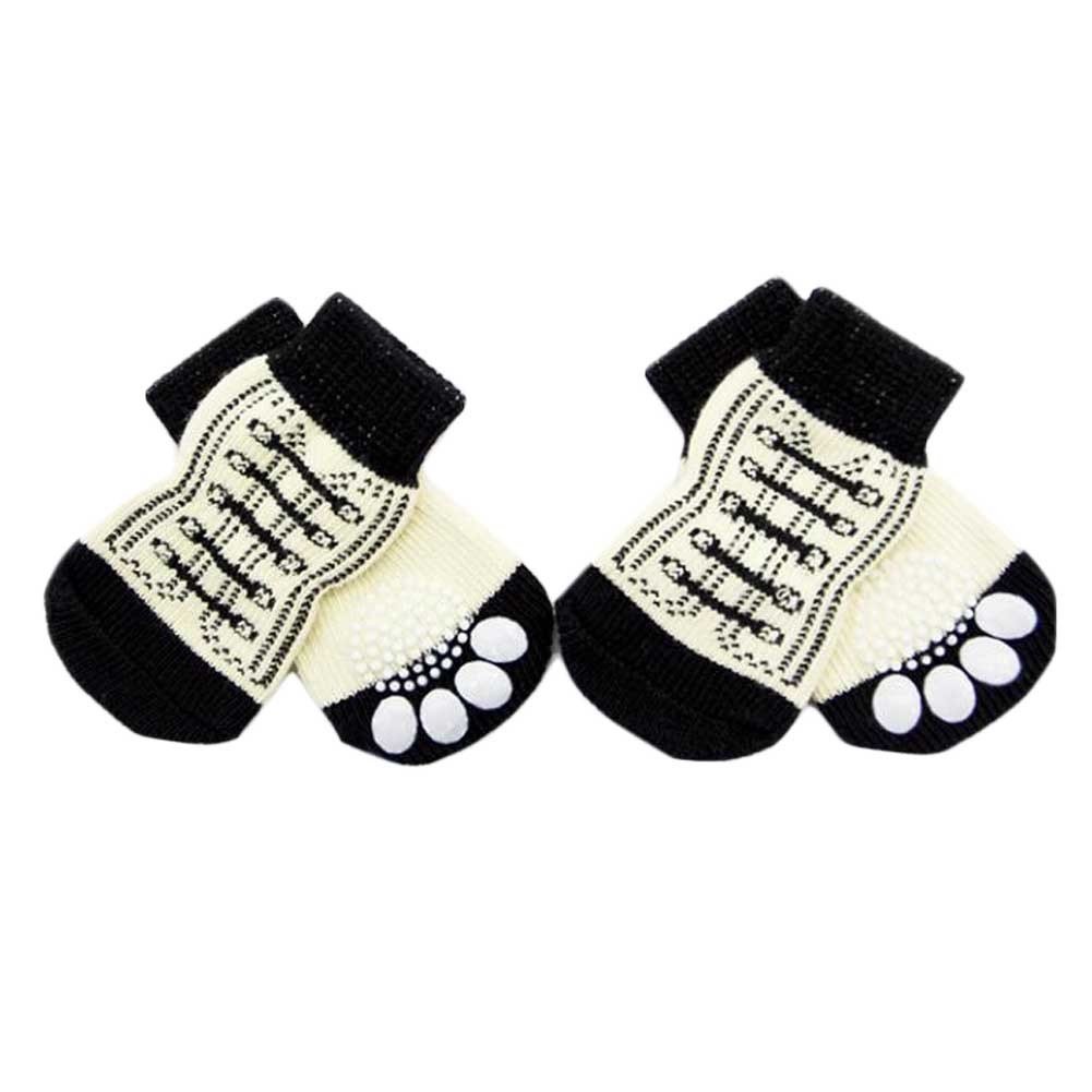 Home > 4 Pcs White Shoes Pattern Cute Puppy Cat Socks Knitted Pet Socks Dog Paw Protection for Puppy Indoor Wear