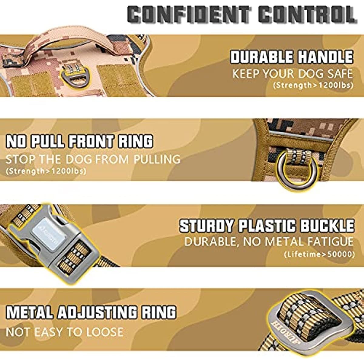 EASY ADJUSTMENT: Put on and take off this product with 2 quick-release buckles with no hassle. 4 fully adjustable straps (2 Shoulder and 2 Chest) allow a snug fit with maximum mobility. DURABLE MATERIAL: Our heavy duty vest made of 900D Nylon with sturdy stitching for extra durability; suitable for all fields use. Two rings can bear great pulling force ; ensuring your dog is safe during training; hunting; working; and any other occasions. Well padded in every pressure load point to protect your dog's skin; while the breathable air mesh keeps your dog comfortable. Molle System Use: Two 1" strips of Molle Sewn on both sides; allow your dog to carry gear in training. A wide range of use for personal service; law enforcement; hunting; or outdoor recreation. (Included ID Badge - BEST FRIEND ). It compatibles with Molle /PALs Pouch; so you can also hook dog bowl; water bottle and toys(No included). MAXIMUM CONTROL & SECURITY: Our safety harness features 2 metal leash attachment points to dog walks safely - One front clip for No-pull control or dog training; and the other one back clip for casual walking or jogging. SATISFACTION WARRANTY: Please reference to the sizing chart. Against any quality issues - Feel free to contact us if you have any questions; we are always here to help